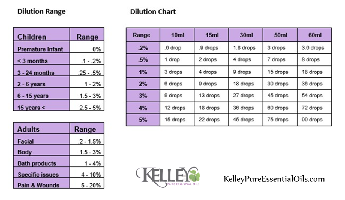 The concentrations listed below are not research-based and is a suggestion rather than a rule. The health of the individual, the essential oils being used, and the age of the individuals are important factors.